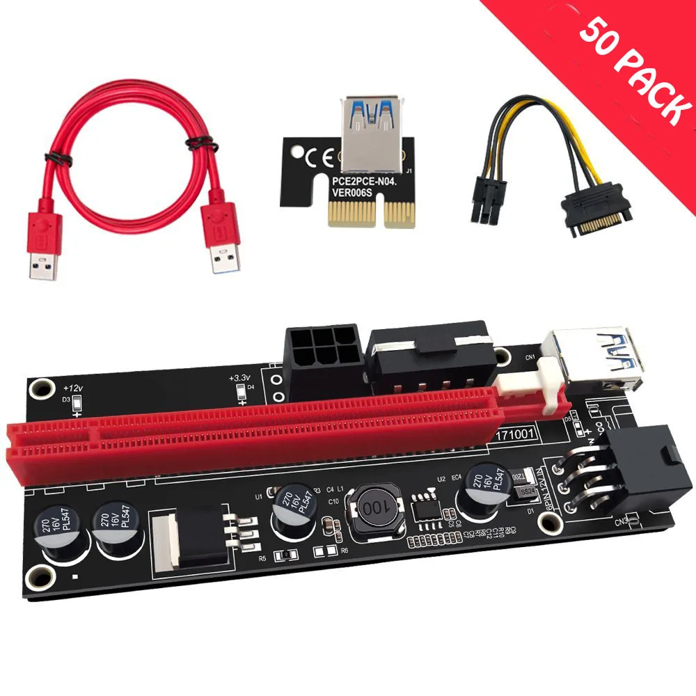 Best 50PCS 009s 1x to 16x PCI Express Riser Card PCI-E Extender USB3.0 Cable dual 6pin 4pin molex SATA to 6Pin for ETH Bitcoin Mining
