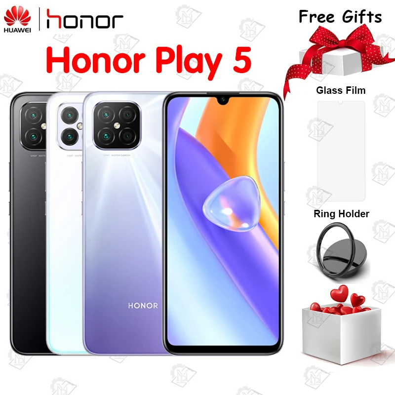 Special Offer New Arrival Original Honor Play 5 Mobile Phone 6.53 Inches 8GB RAM 128GB ROM MT6853 Dimensity 800U Android 10 NFC Smartphone with Free Worldwide Shipping!